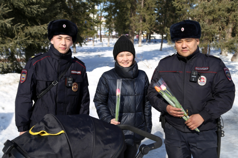 Полицейские дарили женщинам цветы и одаривали их комплиментами. С улыбкой и благодарностью жительницы республиканской столицы откликались на поздравления полицейских, а стражи порядка желали им женского счастья и весеннего настроения.