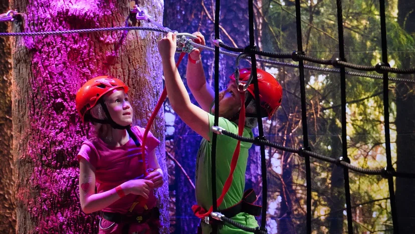 В сопровождении родителей ребята испытали незабываемые эмоции и зарядились положительной энергией. Дети бесплатно поиграли в аттракционах с эффектом дополненной реальности и исследовали скалодром и веревочный парк.