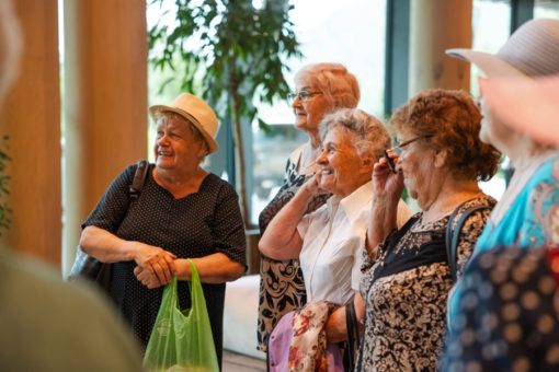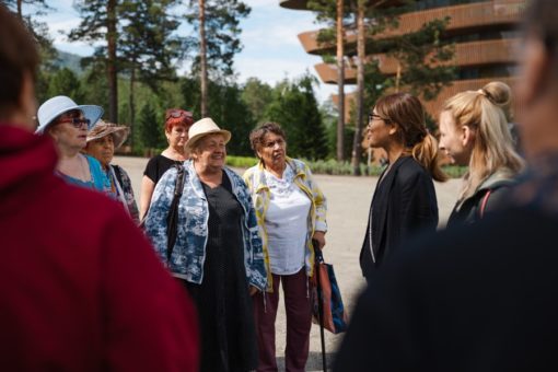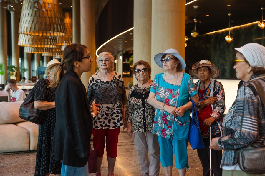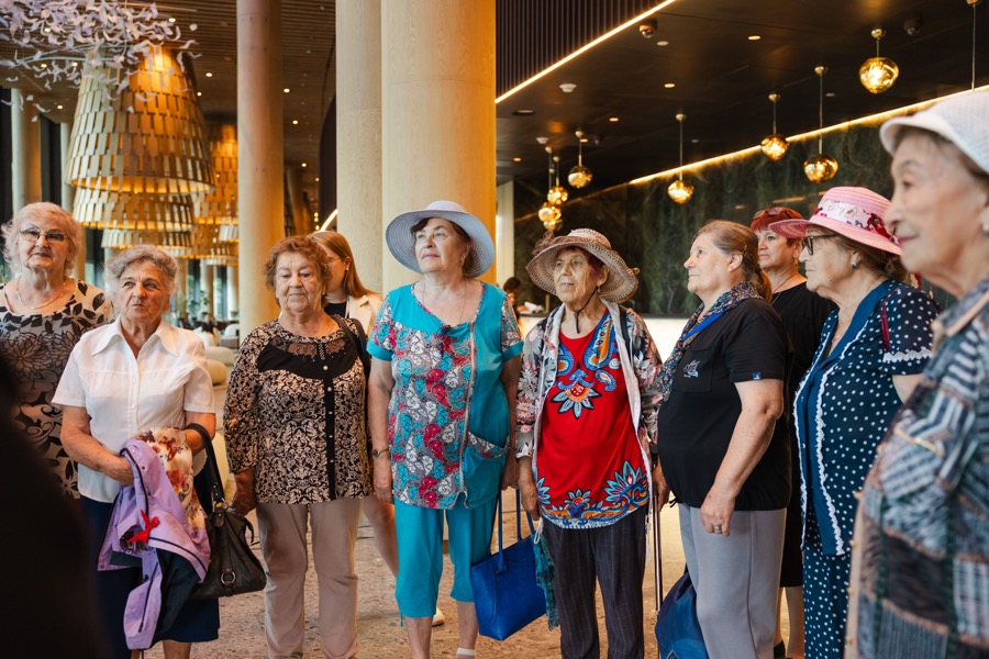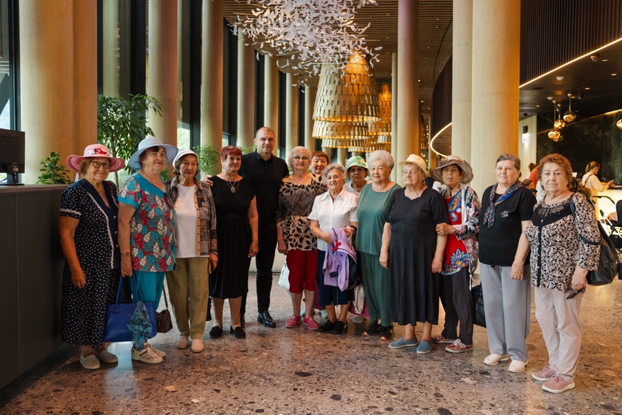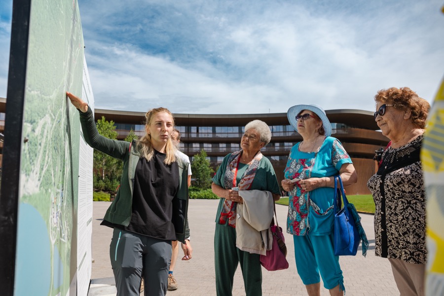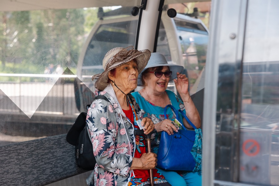 Благотворительный день на курорте начался с подъема по канатной дороге. Гости увидели горы с высоты птичьего полета. Несмотря на свой почтенный возраст (самой возрастной туристке 87 лет, самой младшей 70), общественницы комфортно и безопасно прогулялись по эко-тропам курорта.