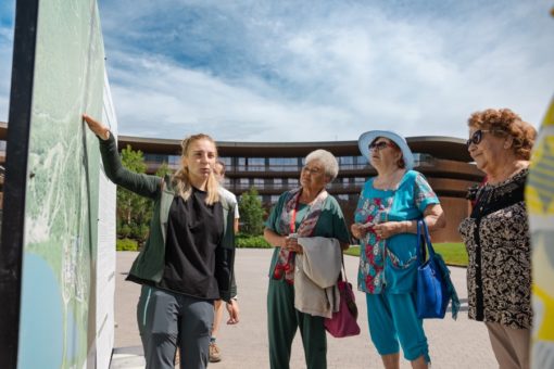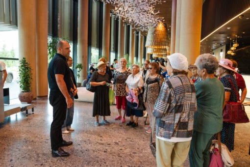 После подъема в гору гостей ждала экскурсия по курорту, гости заглянули в парк развлечений «Лес чудес». Они сделали здесь яркие фото на память и пообещали вернуться в тематический парк вместе с внуками.