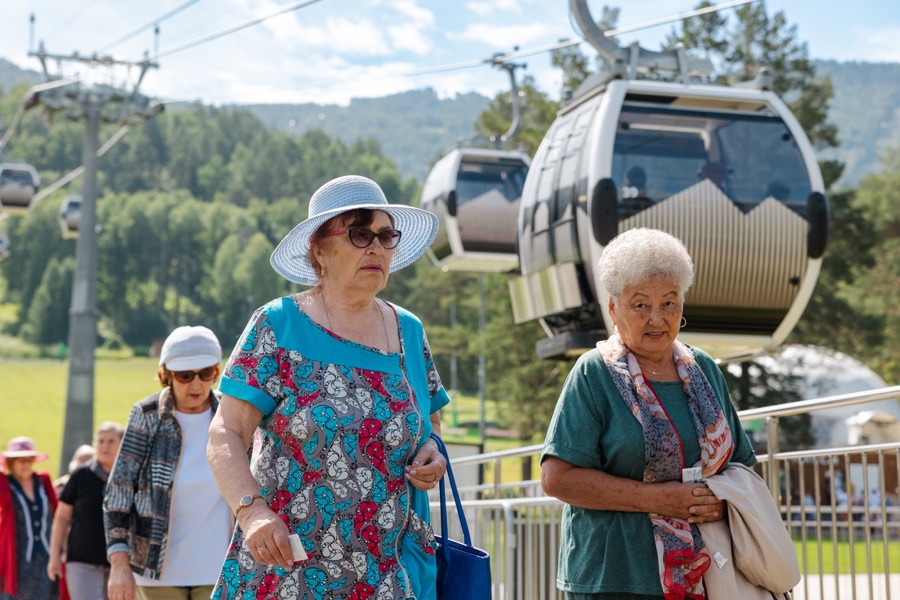 Участники Горно-Алтайского республиканского отделения Общероссийской общественной организации «Дети войны» посетили с экскурсией всесезонный курорт «Манжерок», где поднялись на гору Малая Синюха. Такой подарок для пожилых людей был организован в рамках социальной программы курорта Сбера «Манжерок».