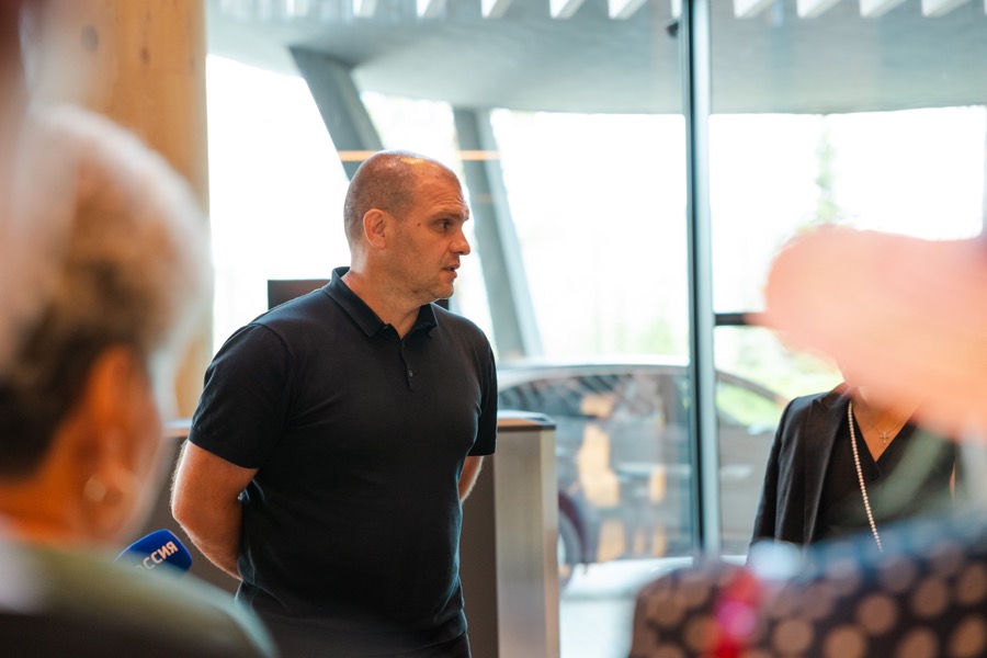 В конце экскурсии делегация познакомилась с генеральным директором курорта Владимиром Щербининым. Он рассказал о курорте, ближайших проектах и подробно остановился на реабилитации Манжерокского озера.