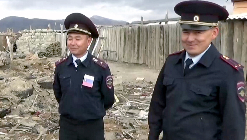 Министр внутренних дел Российской Федерации генерал полиции Российской Федерации Владимир Колокольцев наградил сотрудников отделения МВД по Кош-Агачскому району Республики Алтай майора полиции Александра Рыспаева и лейтенанта полиции Адиса Таханова медалями «За смелость во имя спасения».