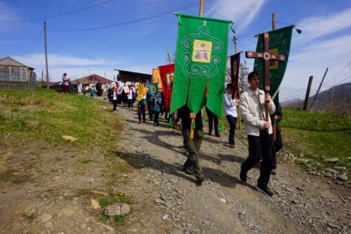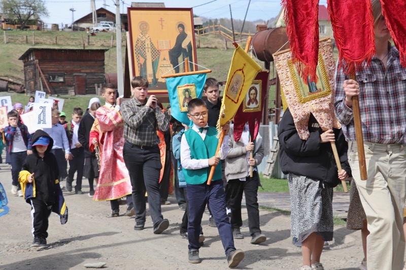 Фестиваль начался общим молебном, затем продолжился торжественным шествием по селу со святынями: крестом, иконами и хоругвями.