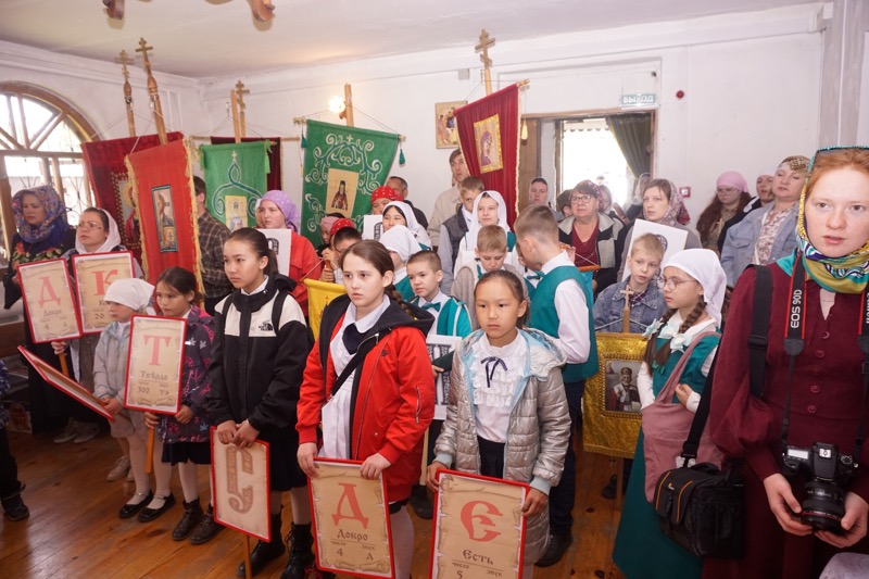 С разных воскресных школ Горноалтайской епархии в Чергу приехали хорошие и добрые дети, чтобы показать свои навыки чтения Псалтири и других молитв на славянском, алтайском и иных языках.