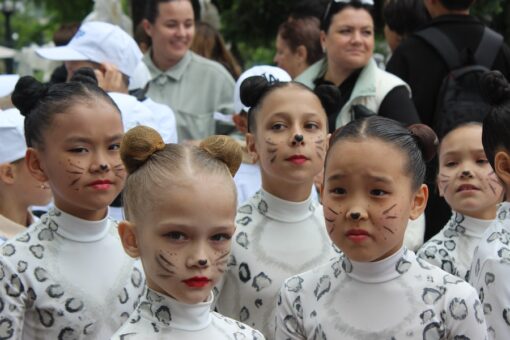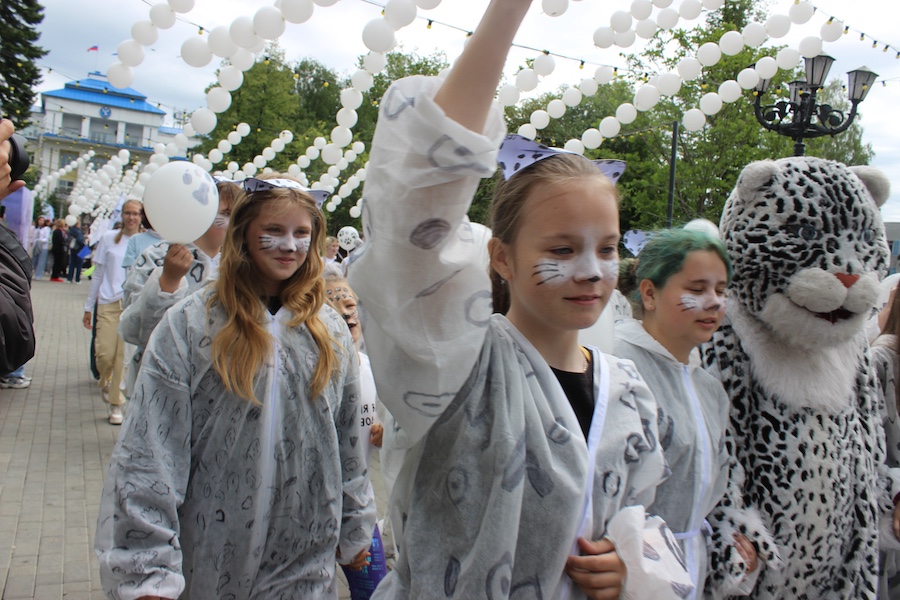 Но самым главным мероприятием фестиваля стало, конечно, костюмированное шествие 26 барсиных команд, прибывших из города и районов республики и представлявших школы и детские сады, а также индивидуальных «барсят» – всего в параде приняли участие около 400 человек (плюс 200 человек стали финалистами конкурсов, участников которых жюри оценивало ранее). В разнообразных, но непременно очаровательных костюмах снежной кошки при этом были не только дети, но и их наставники, а также родители и другие болельщики.