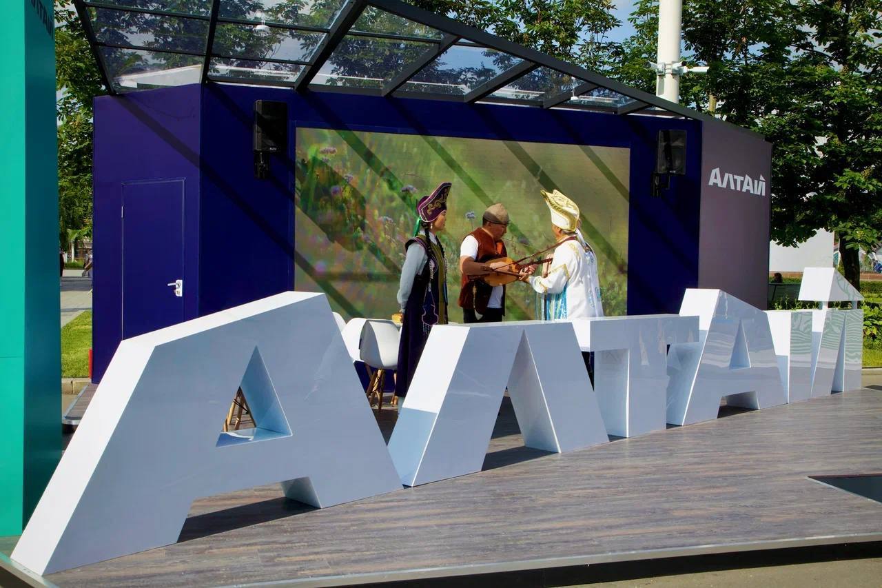 Гостей площадки Республики Алтай ждет насыщенная программа: выступление артистов, игра на национальных инструментах, завораживающее горловое пение, этно-группа «Тюрк Кабай» и увлекательная викторина по достопримечательностям региона.
