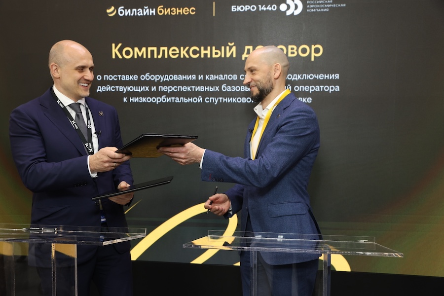Российская аэрокосмическая компания БЮРО 1440 (входит в «ИКС Холдинг») и мобильный оператор Билайн на полях ПМЭФ заключили комплексный договор о поставке оборудования и каналов связи для подключения действующих и перспективных базовых станций оператора к низкоорбитальной спутниковой группировке. Такой формат сотрудничества позволит клиентам Билайна даже на географически удаленных территориях получить высокое качество услуг связи.