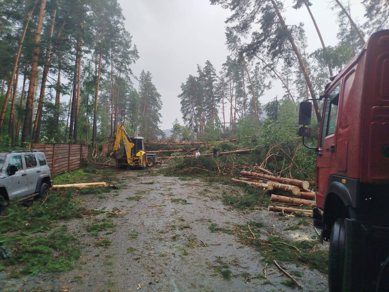 К ликвидации последствий ветровала привлечено две единицы техники и шесть человек дорожных рабочих. За счет дополнительного привлечения силами МЧС количество людей на уборке деревьев с проезжей части составило 20 человек. Сейчас проезд обеспечен.