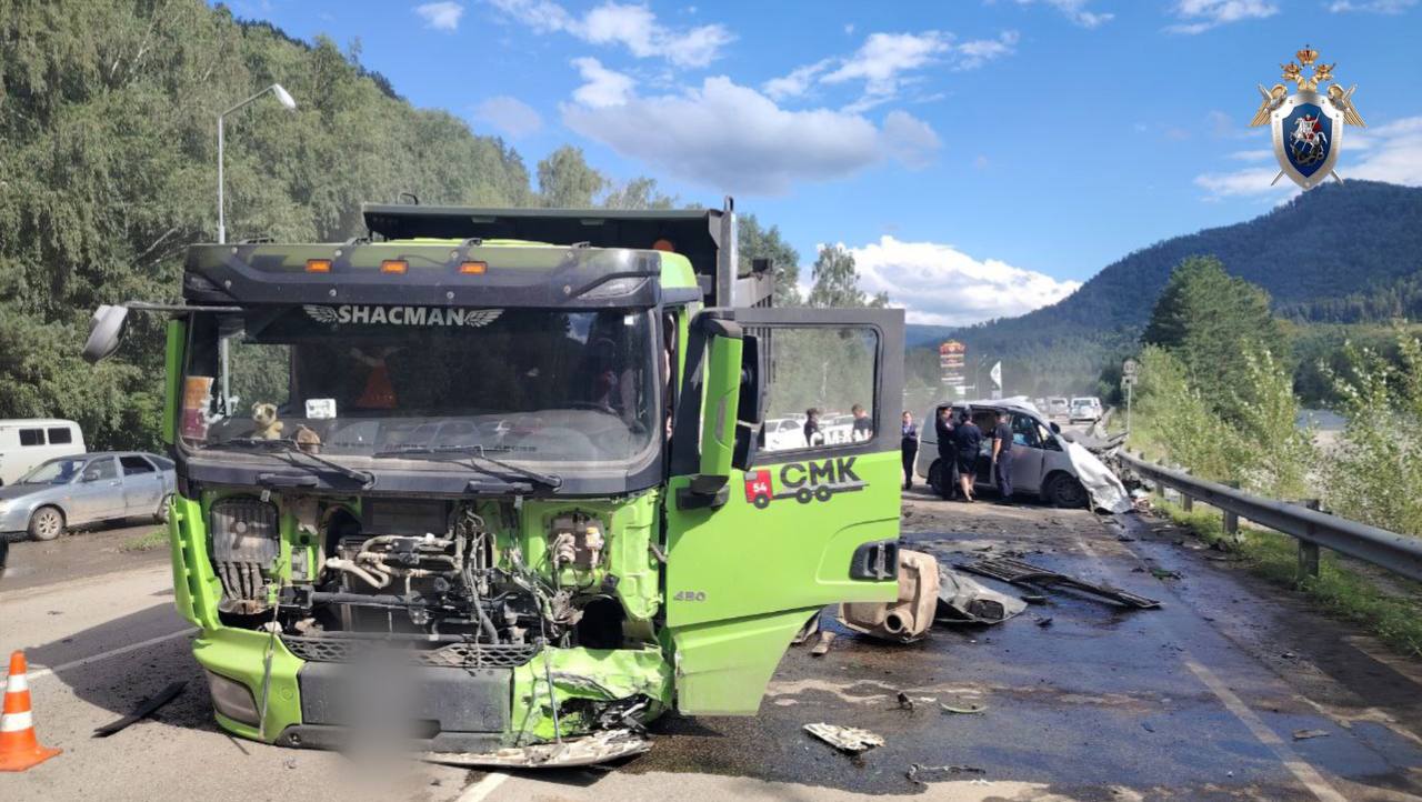 Водитель минивэна Nissan Serena, в котором находилось шесть человек, все жители Новосибирской области, совершая обгон, выехал на встречную полосу, где произошло лобовое столкновение с грузовым автомобилем Shacman.