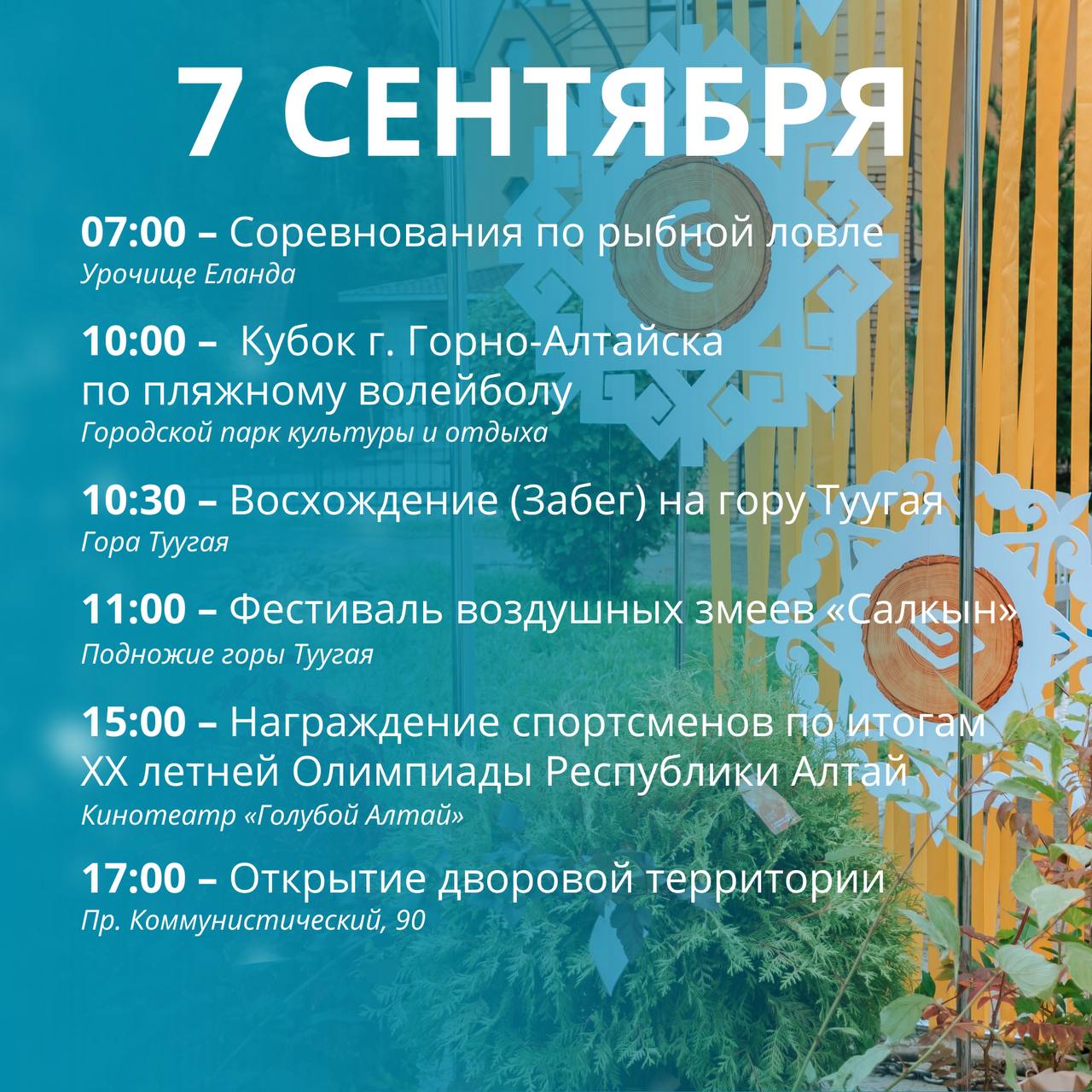 В 11:00 в горпарке также начнут работать многочисленные площадки, выставки, фотозоны и молодежный фестиваль «Сохраняй Алтай», а в переулке Спортивном стартует Гастроулица.