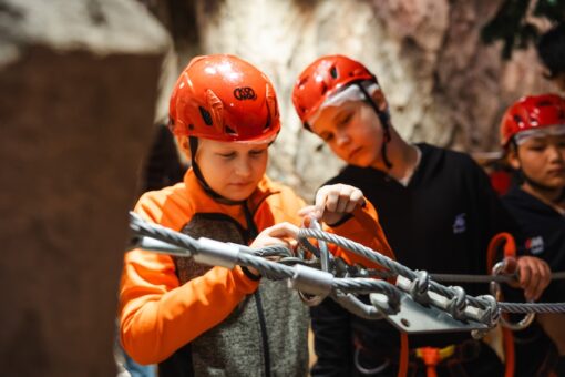 В досуговом центре «Лес чудес» участники программы «Манжерок — детям» проявили смелость и физическую подготовку, успешно преодолев маршруты веревочного парка. Юные гости с энтузиазмом осваивали интерактивные VR-аттракционы и другие активности. Комплекс стал для них сказочным миром, где нет места плохим мыслям, а есть только чудо и увлекательные игры.