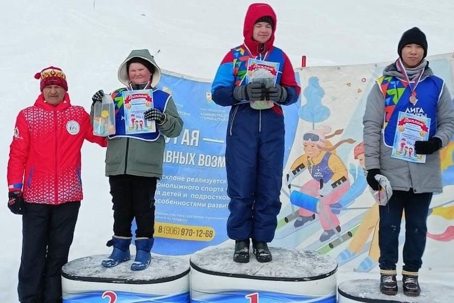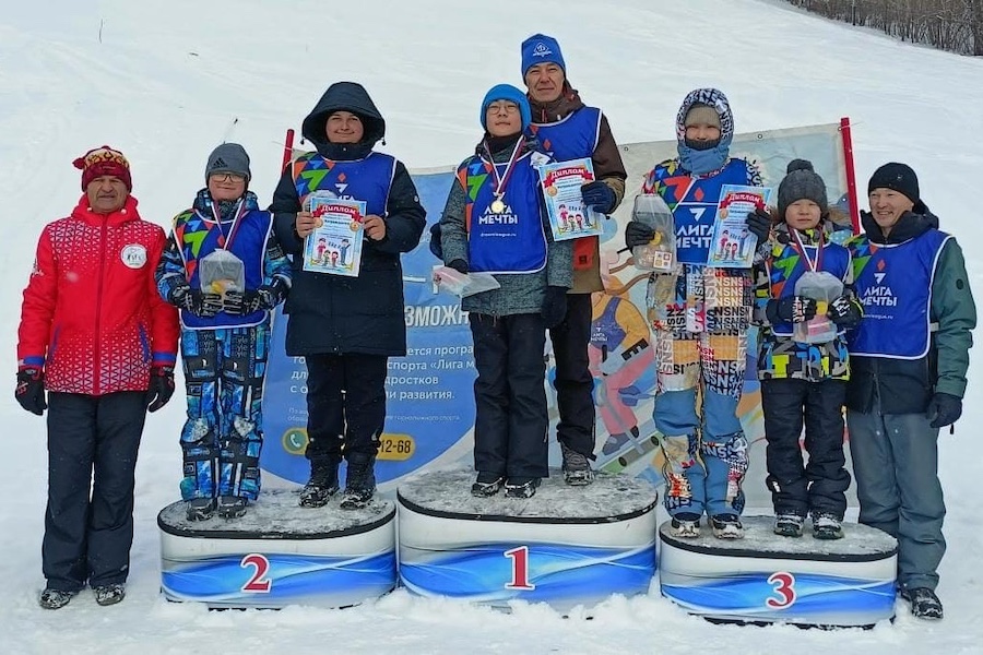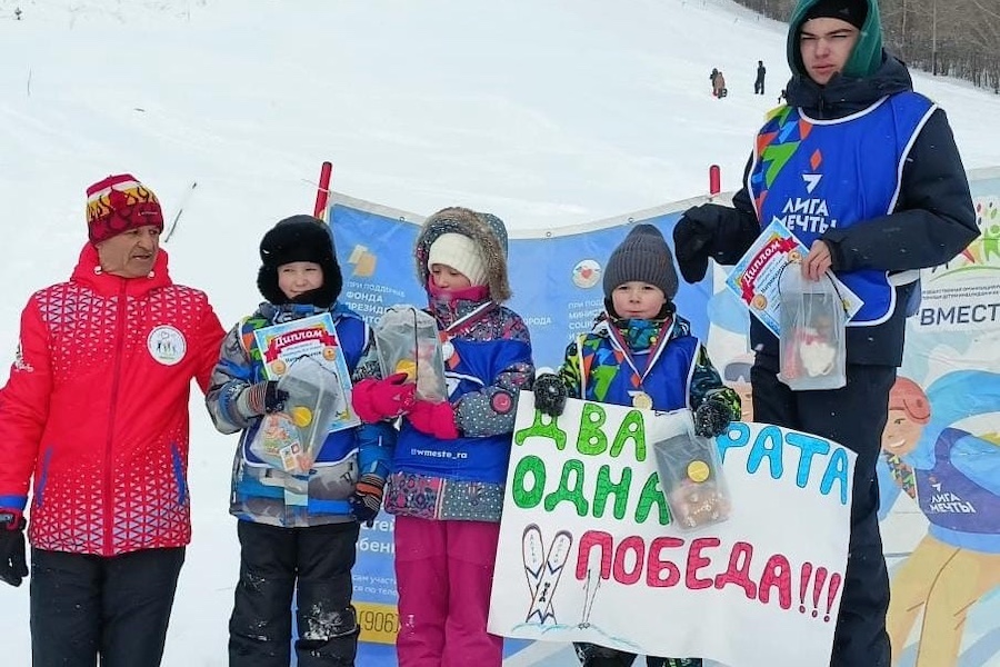 На горе Тугая в Горно-Алтайске состоялись старты «Папа, мама, я — на старте вся семья!» для горнолыжников, занимающихся в программе «Лига мечты» и членов их семей.