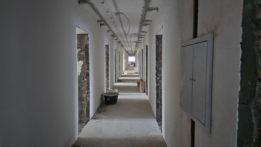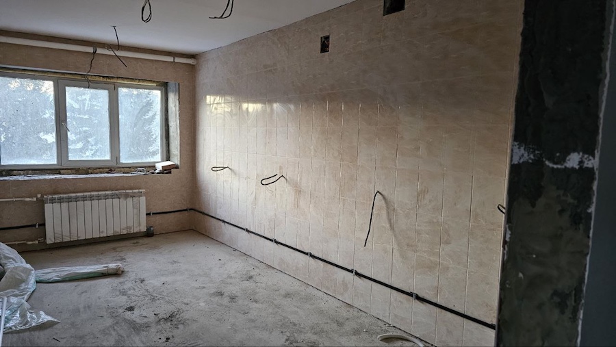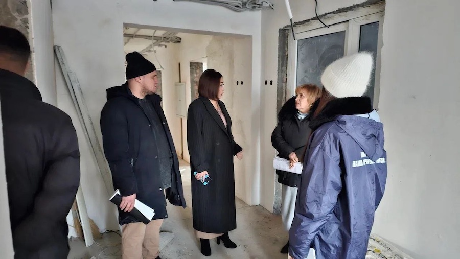 Подрядная организация ООО «Трио» уже завершила демонтажные работы. Активно ведутся отделочные работы, монтаж электрики, наружное утепление стен 2-5 этажей. Выполнение работ по отоплению составляет 80%, фасадные работы выполнены на 50%. Общая степень готовности объекта оценивается в 55%. Все работы идут в графике, завершение ремонта запланировано на конец июня 2026 года.