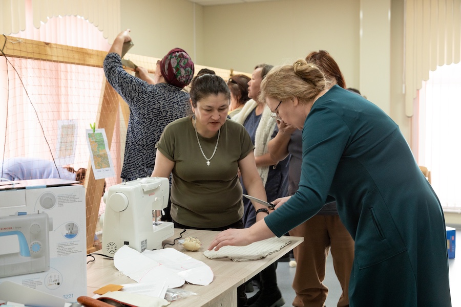 Мастерицы села с энтузиазмом включились в работу и под руководством опытной наставницы попробовали себя в новом деле.