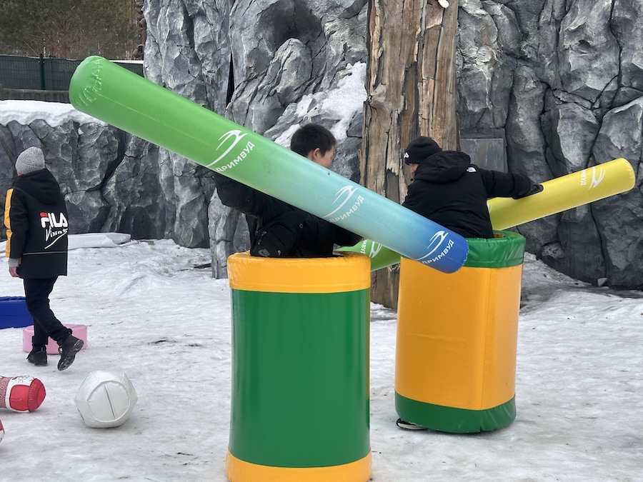 Пока одни ребята набирали скорость на спусках, их сверстники из Тобелерской школы отправились покорять высоту. Подъем на гондольном подъемнике на вершину Малой Синюхи стал для многих первым знакомством с курортом. Открывшиеся с высоты панорамы заснеженных пиков и замерзшего плеса Катуни привели детей в полный восторг.