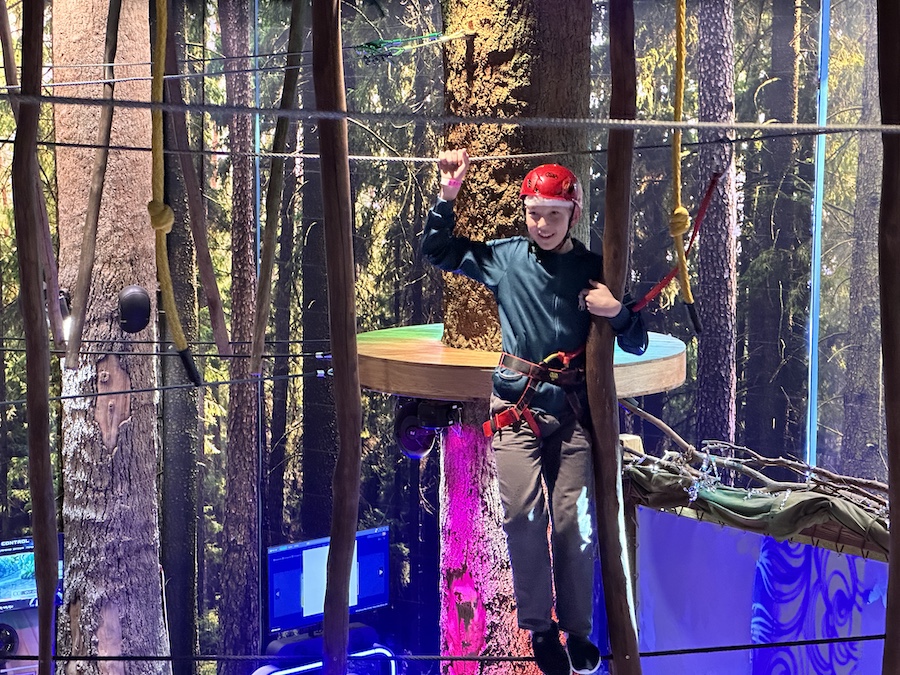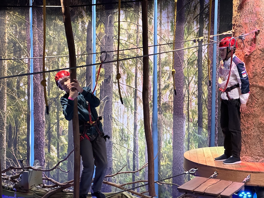 Но на этом приключения не закончились. В досуговом центре «Лес чудес» ребята прошли трассы веревочного парка, проверяя свою ловкость и смелость, а затем с головой погрузились в цифровые миры на VR-аттракционах.