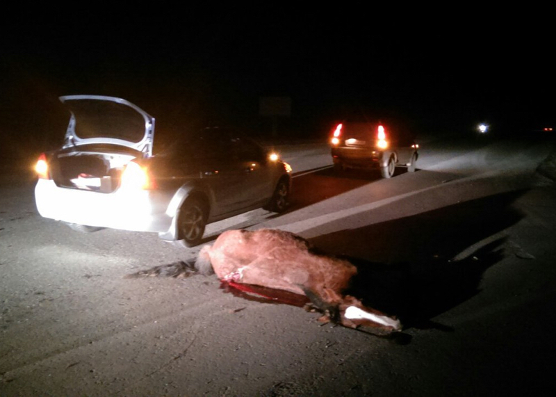 Как рассказал «Новостям Горного Алтая» очевидец происшествия, автомобиль двигался со скоростью около 90 км. в час. В результате аварии погибла лошадь, серьезные повреждения получил автомобиль. Житель Подгорного (возраст около 30 лет), управлявший автомобилем, не пострадал.