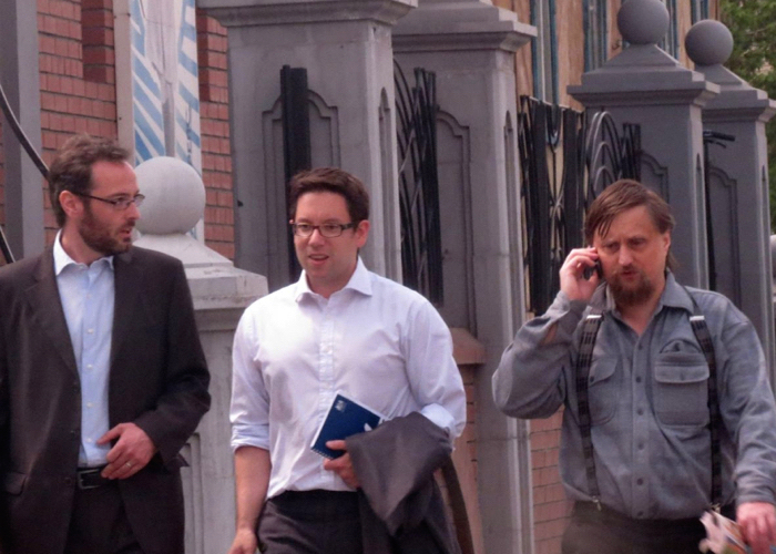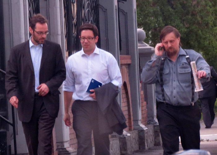 Первые секретари посольства Великобритании в России Сэм Джереми и Джонатан Эванс в рамках своего рабочего визита в Республику Алтай встретились сегодня, 27 мая, с лидером регионального отделения «Парнаса», владельцем газеты «Листок» Сергеем Михайловым. Как сообщает наш читатель, поделившийся фотографиями, британские дипломаты и горно-алтайский оппозиционер прогуливались в районе автовокзала.