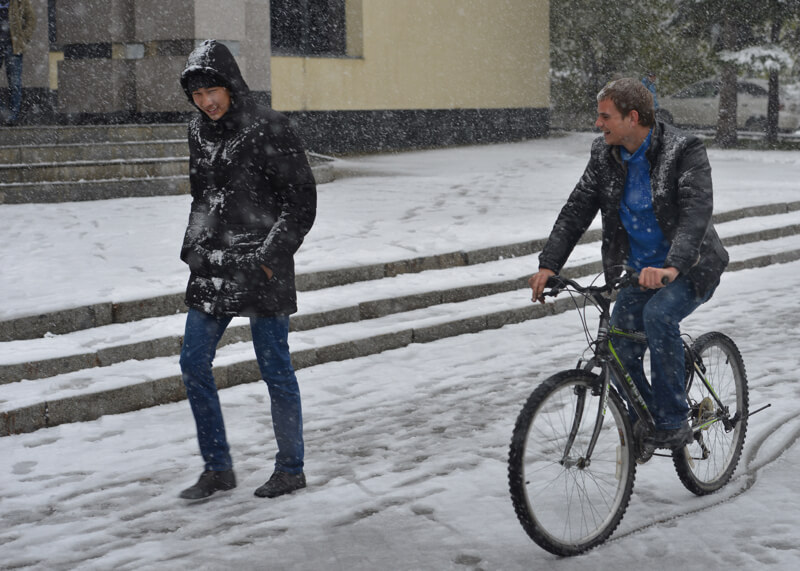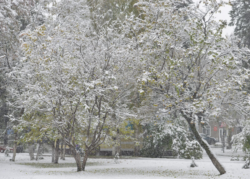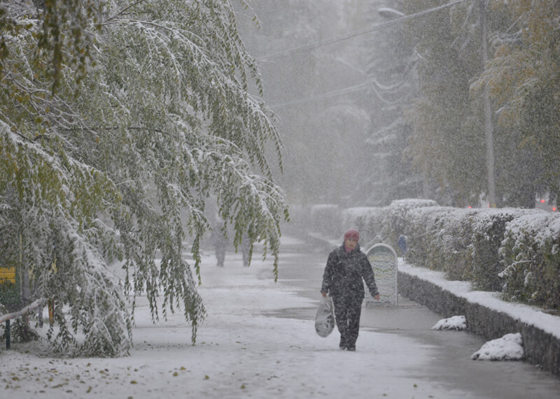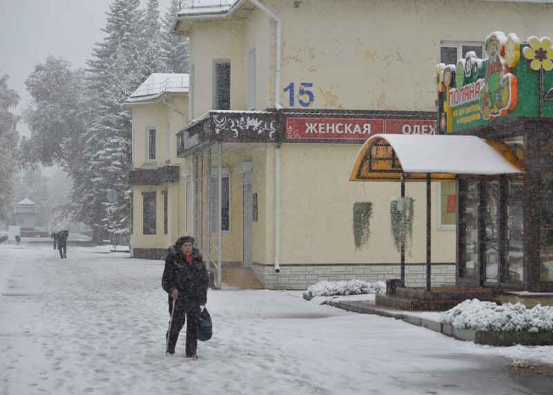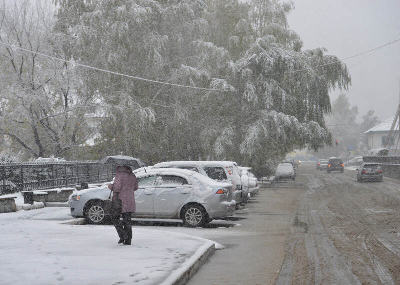 С утра 12 октября в Горно-Алтайске идет снег. В городе и окрестностях установился снежный покров. Синоптики прогнозируют, что снегопад, а также дождь со снегом, будут идти в ближайшие два дня.
