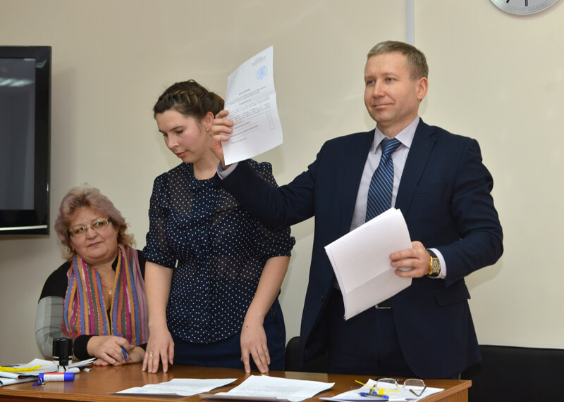 На заседании тайным голосованием из числа членов комиссии с правом решающего голоса по предложению ЦИК был избран председатель. Им стал Дмитрий Степанов, ранее занимавший должность начальника республиканского Управления Минюста. За него проголосовали 13 из 14 членов комиссии.