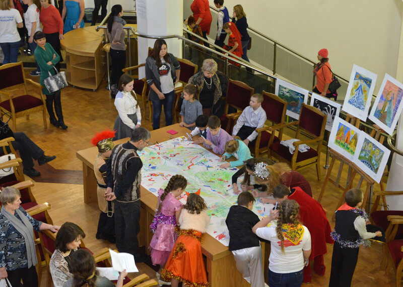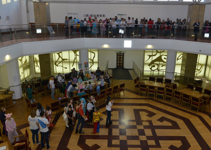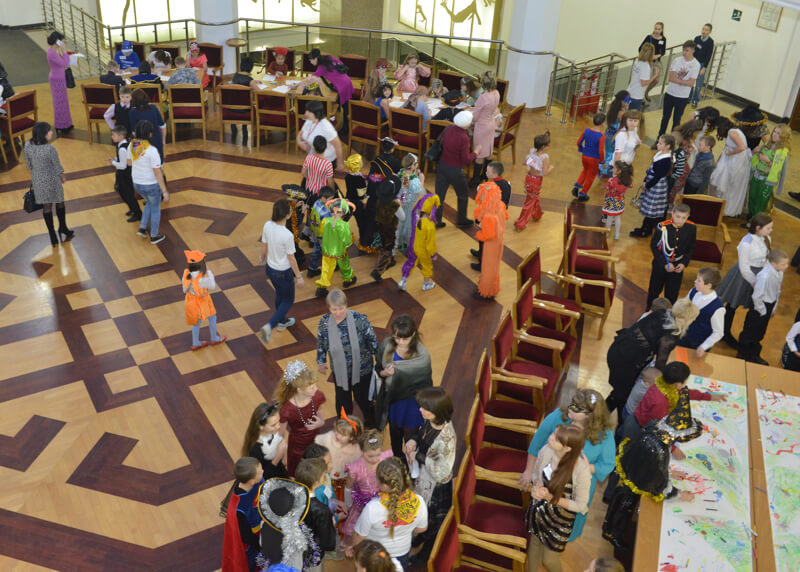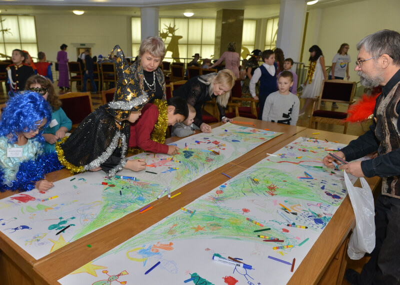 На входе в театр детей встречали ростовые куклы. На различных площадках прошли мастер-классы по рисованию, аквагриму, хореографии. Работала выставка животных. В малом зале театра детям показали мультфильм по алтайской сказке «Дети зверя Мааны».