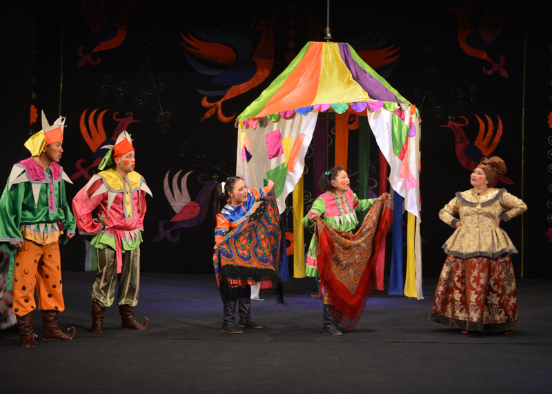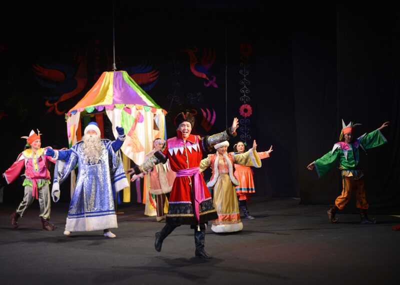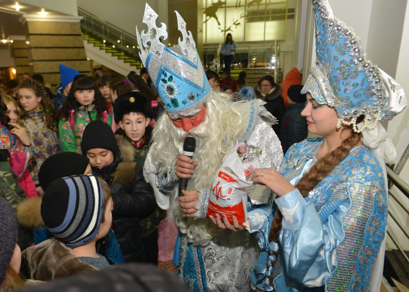 Затем в большом зале детей поздравили официальные лица – министр культуры Республики Алтай Эжер Малчинов, первый заместитель главы города Ольга Сафронова. После этого начался спектакль «Морозко», а в завершение праздника ребятам вручили новогодние подарки.