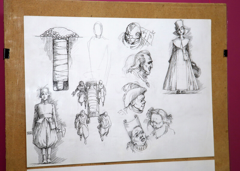 Экспозиция включает в себя авторские иллюстрации, демонстрирующие этапы работы над книгой, и саму готовую книгу, выпущенную издательской группой АРБОР.