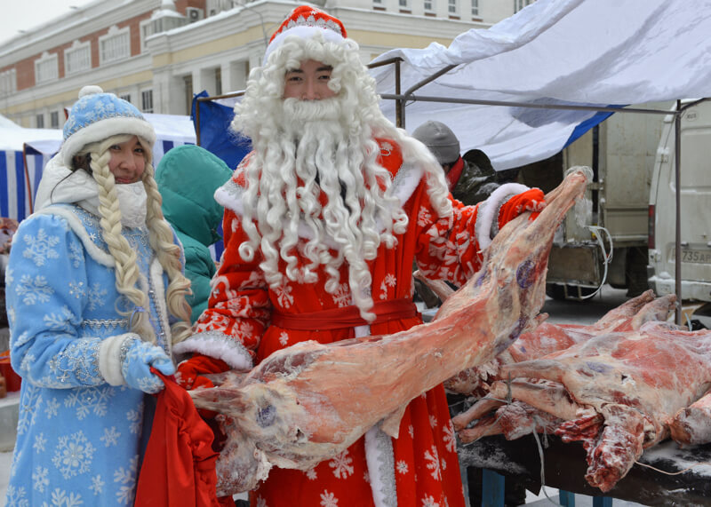 Республиканская предновогодняя ярмарка состоялась в минувшую субботу в Горно-Алтайске. На ярмарке продали продукции на сумму более 23,8 млн рублей, в том числе сельхозпродукции – на 17,6 млн рублей. Продано 31,7 тонн мяса, из которых 12,8 т говядины, 5,9 т баранины, 9,5 т свинины, 1,5 т конины, сарлычатины, козлятины, маралятины – 2 тонны.