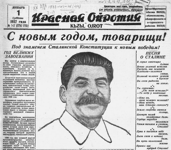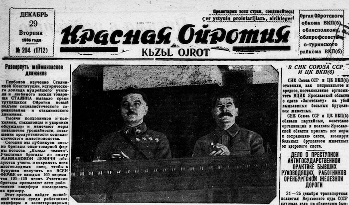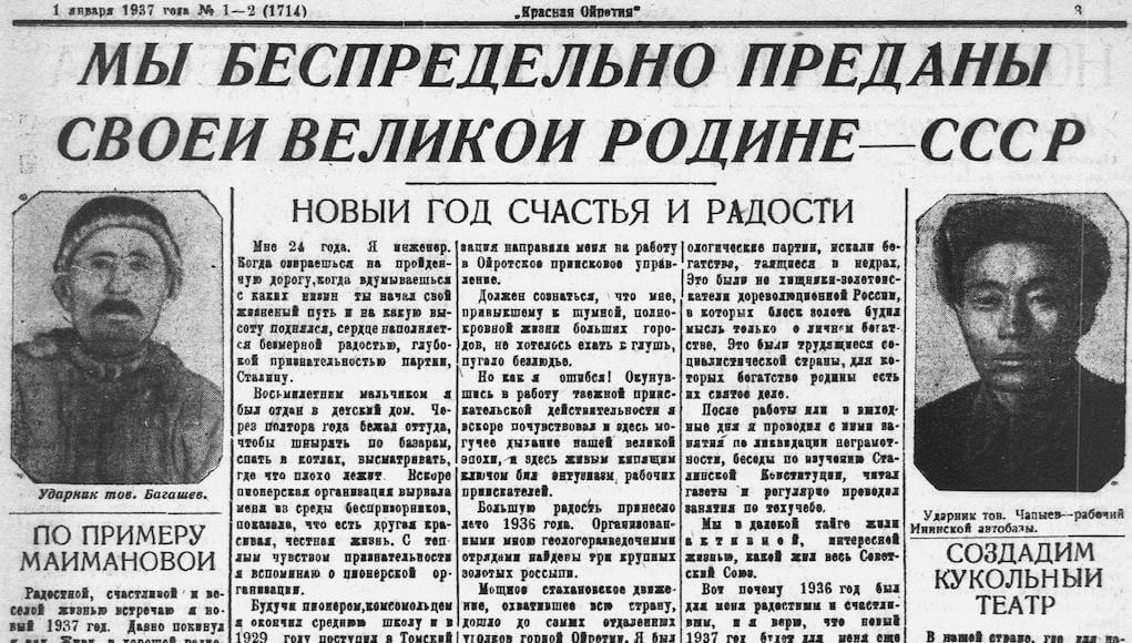 В первом обзоре предлагаем вам ознакомиться с некоторыми публикациями, вышедшими в «Красной Ойротии» в номерах за 29 декабря 1936 года и 1 января 1937 года. Стилистика, пунктуация и орфография оригиналов сохранены.