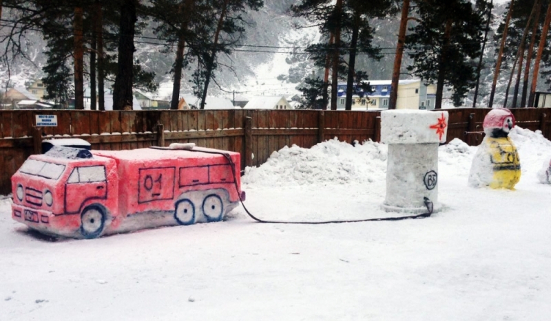 Огнеборцы Республики Алтай своими руками соорудили изо льда фигуры, которыми украсили территории своих частей. Среди фигур — пожарные автомобили, огнетушители, символы наступившего года, герои мультипликационных фильмов и другие, сообщает Главное управление МЧС по Республике Алтай.