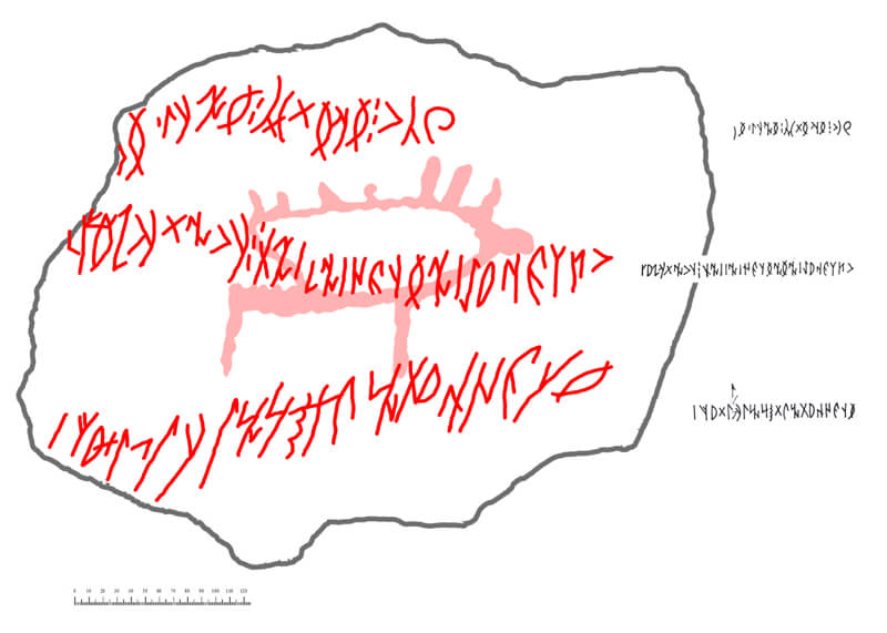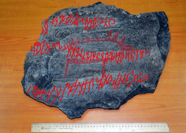 «Надпись состоит из 6 строк и 113 рун. На сегодняшний день это самый крупный рунический текст, найденый в Горном Алтае. «