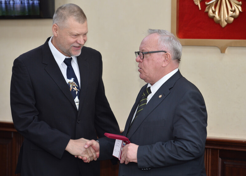 Александр Бердников вручил Игорю Калмыкову регалии звания «Почетный гражданин Республики Алтай», присвоенного директору Алтайского заповедника «за заслуги в профессиональной деятельности, плодотворную работу по сохранению гражданского согласия в обществе, укреплению мира, дружбы и сотрудничества между народам». Заместителю главного государственного инспектора в области охраны окружающей среды Сергею Ерофееву присвоено почетное звание «Заслуженный работник охраны природы Республики Алтай». Заместитель директора по экологическому просвещению заповедника Светлана Щигрева получила благодарственное письмо главы Республики Алтай.