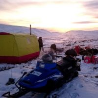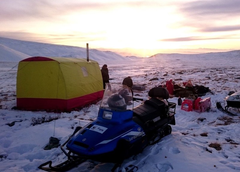В распоряжении участников экспедиции были три снегохода Ямаха-Викинг и 1BRP с нартами – средства передвижения в горах. На нартах-волокушах везли весь экспедиционный груз, включая оборудование, палатку с печкой, бензин. В высокогорье, где проходила экспедиция, абсолютно нет леса, так что с собой приходилось возить еще и дрова.