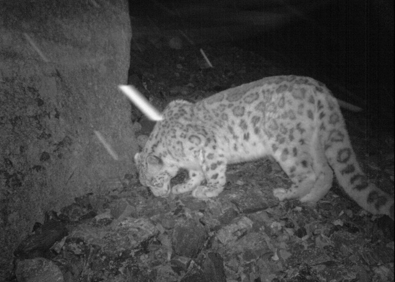 «Следы недавнего присутствия снежных барсов фиксировались только на Курайском хребте. На хребте Чихачева следов барсов во время работы экспедиции не обнаружено. Фотоловушки отмечали последние встречи барсов только в октябре 2016 года. По словам пограничников, именно тогда начались обильные снегопады. Снега глубокого и рыхлого навалило столько, что они с трудом проезжали на снегоходах к своим передовым постам на границе. Видимо, барсы откочевали вслед за горными козлами в более бесснежные участки Тувы и Монголии на другую сторону хребта», — рассказал старший научный сотрудник заповедника Сергей Спицын.