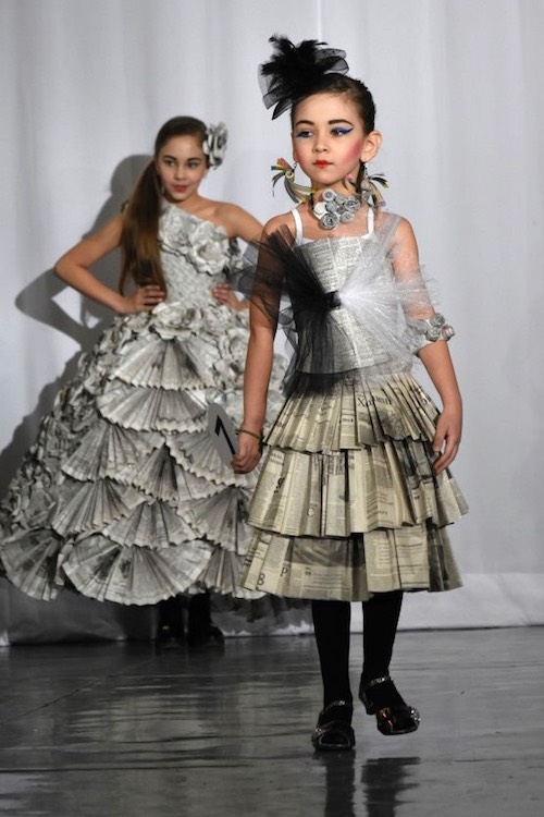 Мы решили сделать платья из газет. Начали рисовать эскизы, и на этом этапе узнали о седьмом фестивале «Радуга», который проходит на базе государственного политехнического колледжа. Решили участвовать. Создание платьев из газет не оказалось делом легким. Создать эскизы – одно, сложности начались, когда дошли до практической стороны дела. Мне хотелось, чтобы девочки по максимуму самостоятельно справились с технической стороной вопроса, но направляла их, помогала, предварительно неоднократно поработав с газетой как с испытуемым материалом. Родители девочек также приняли участие в этом процессе, за что им большое спасибо. Дело потихоньку пошло. В итоге, путем проб и ошибок, у нас родилась коллекция. Для работы над ней кто-то нам даже предлагал газеты середины прошлого века, но я отказалась, решив, что такие издания можно хранить и дальше на память… В конкурсе участвовали Соня Кыдрашева, Вероника Жигалина, Даша Матянина и Соня Векессер. Также Инной Кыдрашевой было представлено платье Дианы Векессер, которая сама не смогла принять участие в показе. Конечно, мы очень рады победе в фестивале – она очень мотивировала девочек к дальнейшему творчеству!