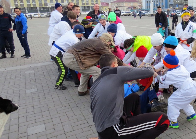 Традиционной игрой «стенка на стенку» закончились упражнения на площади.