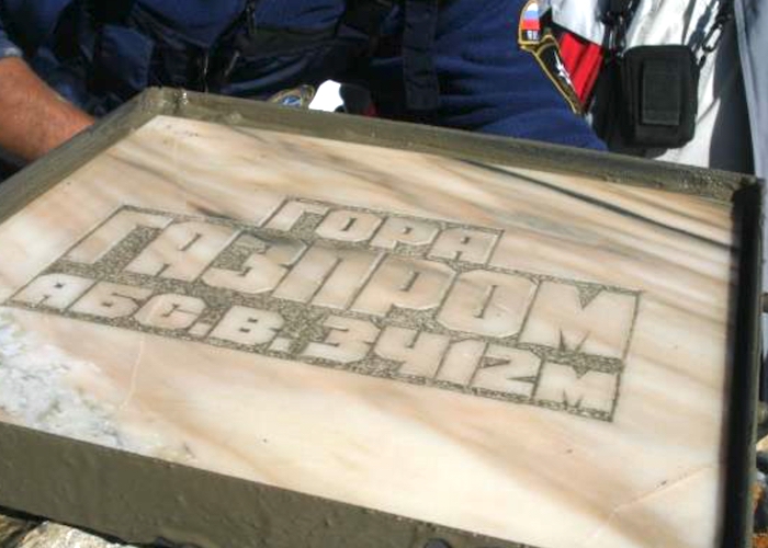 Далее участники экспедиции развернули шестиметровый баннер с надписью «Газпром» и сфотографировались на его фоне. Кроме того, над вершиной сделал три круга вертолет, который заснял все с разных ракурсов с высоты.