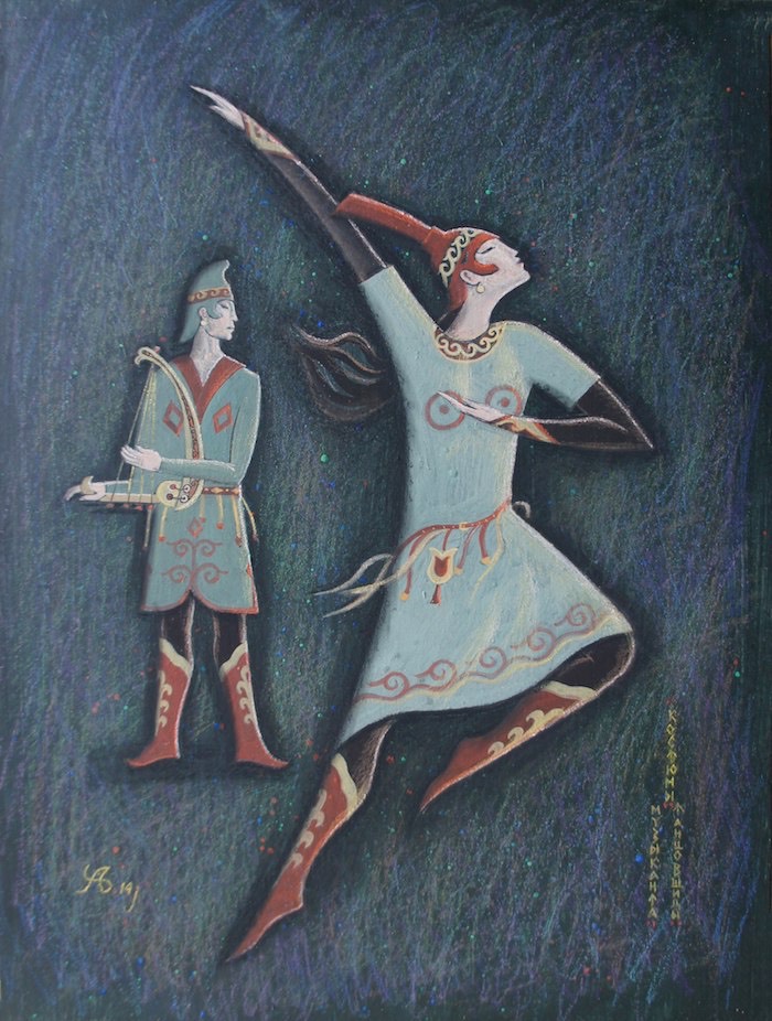 — Семь лет назад я работал над книжкой «Легенда о Золотом озере» – выступил и как автор, сочинив текст на основе алтайской легенды, и как иллюстратор, — рассказывает Амыр Укачин. — Пока работал, родилось чувство, что герой легенды помогал мне воплотить задумки. Я понял, что литературная основа хорошо стимулирует мою фантазию художника, позволяя двигаться в нужном направлении… Прошли годы, и моя мечта о постановке «Легенды о Золотом озере» сегодня уже воплощена на этапе эскизов к этнобалету, который, очень надеюсь, когда-нибудь увидят на сцене. В этом сюжете есть все, чтобы популяризировать наше природное достояние – Золотое (Телецкое) озеро и показать на основе хореографического искусства историю любви, которая родилась в горах Алтая, и благодаря которой появились на свет такие названия – Золотое и Телецкое озеро.