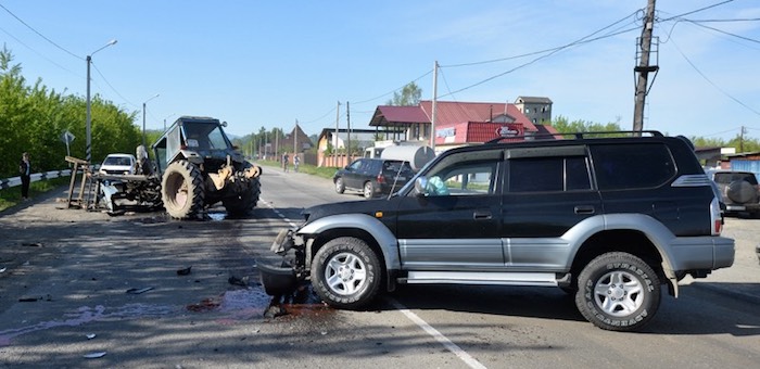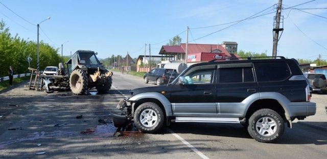 Утром 23 мая в Майме в районе остановки «Заготзерно» по ул. Алтайской произошло дорожно-транспортное происшествие, в результате которого получили серьезные повреждения Toyota Land Cruiser и трактор. К счастью, в аварии никто из людей серьезно не пострадал.