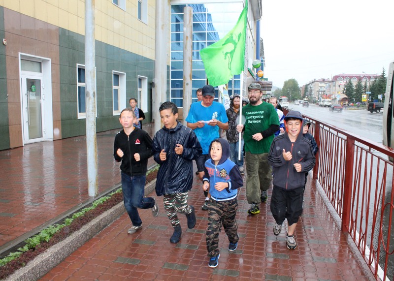 Путь пробежки пролегал по главному проспекту Горно-Алтайска. Бодро и внятно звучали кричалки, по-русски:
