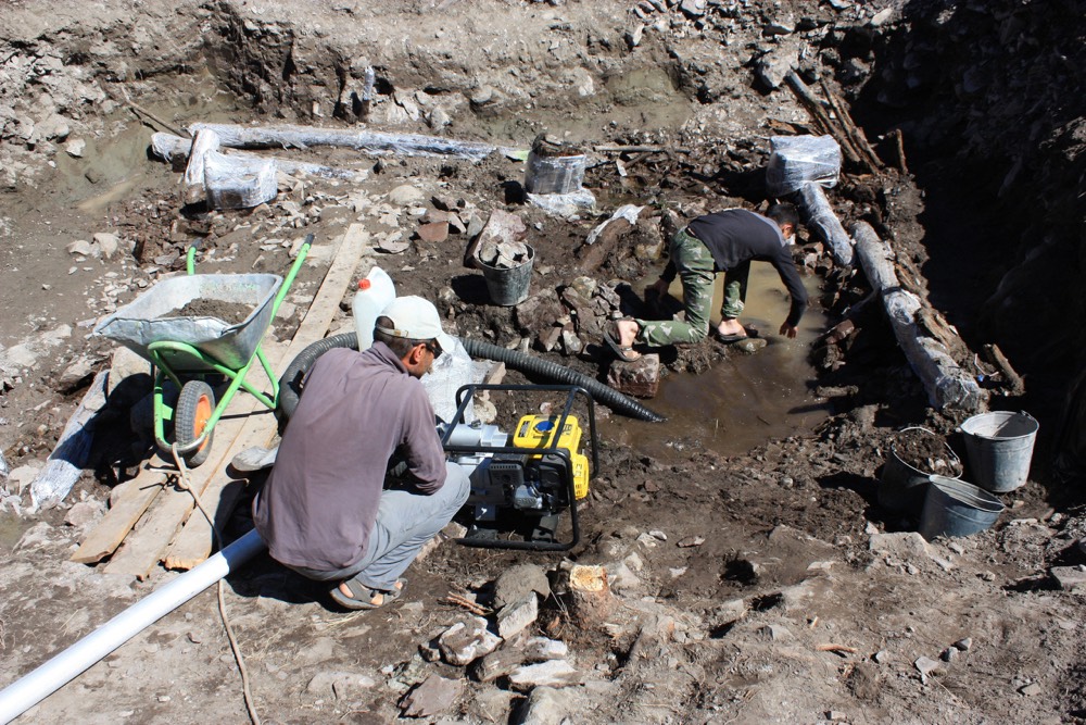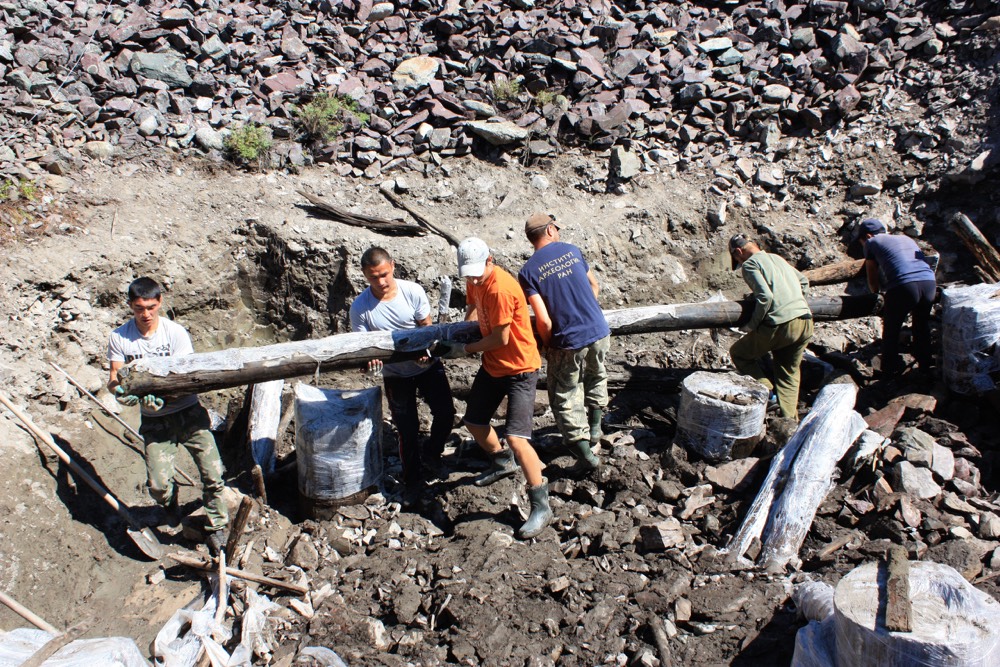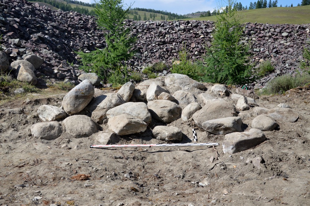 Участники экспедиции провели доследование могильной ямы и нашли оставленные экспедицией Руденко на прежних местах внешний сруб и столбы-опоры бревенчатого наката. Могильная яма была заполнена водой, образованной при таянии подкурганной мерзлоты, а грунт на дне ямы оказался сильно промерзшим. Сруб оказался почти полностью целым, за исключением выпиленных для доступа к сопроводительному захоронению лошадей бревен северной стены, а также нескольких бревен западной стены, также отпиленных в 1949 году при исследовании погребения, рассказывает на сайте ГАГУ кандидат исторических наук, старший научный сотрудник музейного комплекса госуниверситета Никита Константинов.