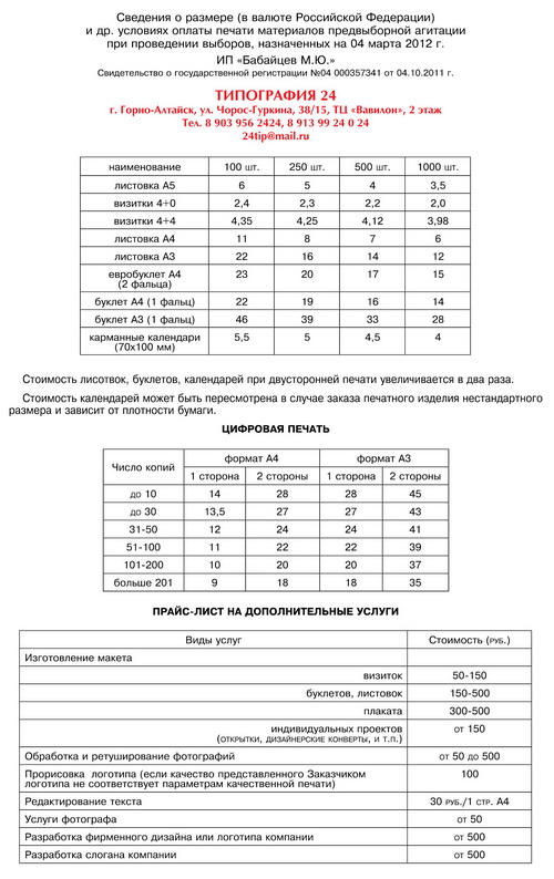 Типография ООО «Алтайский Дом печати» уведомляет о своей готовности предоставить полиграфические услуги на выборах мэра г. Горно-Алтайска, депутатов Городского совета г. Горно-Алтайска и муниципальных...
