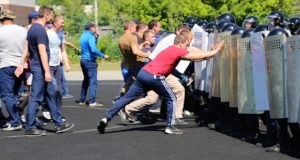 Полицейские провели учения по пресечению массовых беспорядков