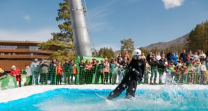 Горнолыжный сезон на Манжероке завершили прыжками в бассейн