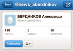 В сети микроблогов Twitter зарегистрирован аккаунт news_aberdnikov, ведущий которого подписывает свои сообщения «БЕРДНИКОВ Александр». Первое сообщение этого аккаунта датировано 27 июня этого года, на...